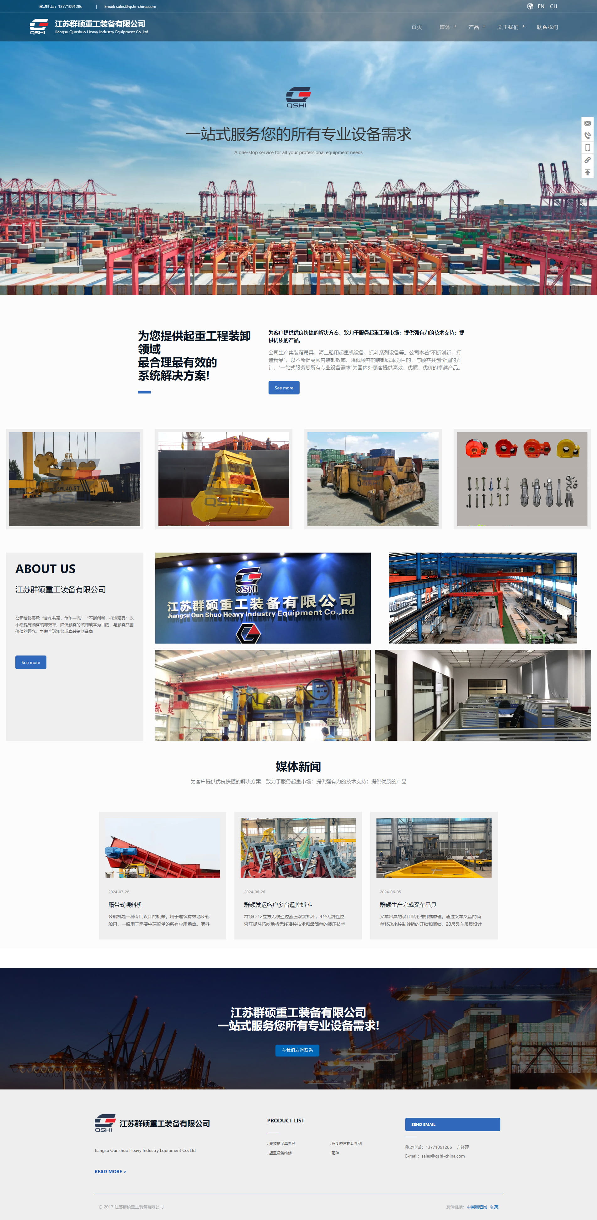 江蘇群碩重工裝備有限公司是集港口\海洋\工程機械的設計、研發、制造、銷售、服務為一體的大型綜合性企業。公司擁有各種大型機械加工設備及可靠的生產工藝、完善的檢驗檢測手段、嚴格的質量保證體系。作為全球領先的港口\海洋\工程機械成套裝備制造商,QSHI的優勢在于可向客戶提供港口、船運工程裝卸的整體解決方案和模塊化交付,并不斷基于非標產品開發和海工應用領域不斷推出尖端產品.從冰天雪地到熱帶雨林,從浩瀚海洋到茫茫大漠,我們的抓斗、吊具、漏斗、吊機以及工程機械、物料機等上千臺裝卸設備已應用于世界各大港口、船務公司,工程領域企業,與客戶并肩作戰,共同創造著起重裝運行業的歷史。