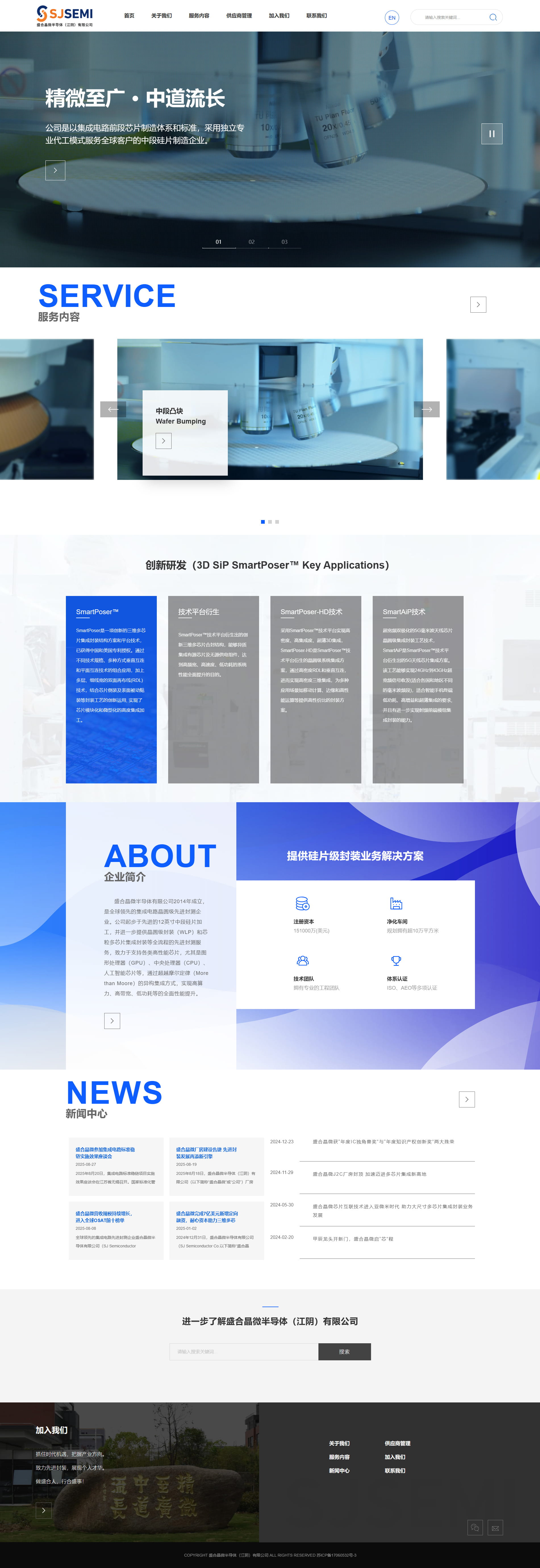 網(wǎng)站設(shè)計(jì)采用科技極簡風(fēng)格,以藍(lán)白灰配色傳遞半導(dǎo)體行業(yè)的精密與專業(yè)感。首頁通過“精微至廣·中道流長”主題語奠定品牌格局,信息布局模塊化,服務(wù)內(nèi)容與企業(yè)簡介分區(qū)清晰,便于深度瀏覽。交互動(dòng)效注重細(xì)節(jié),如模塊懸停微反饋與平滑滾動(dòng),增強(qiáng)數(shù)據(jù)型頁面的交互體驗(yàn)。整體呈現(xiàn)一家專注集成電路中段制造的高端企業(yè)形象。